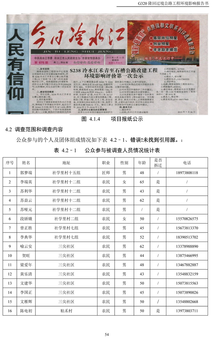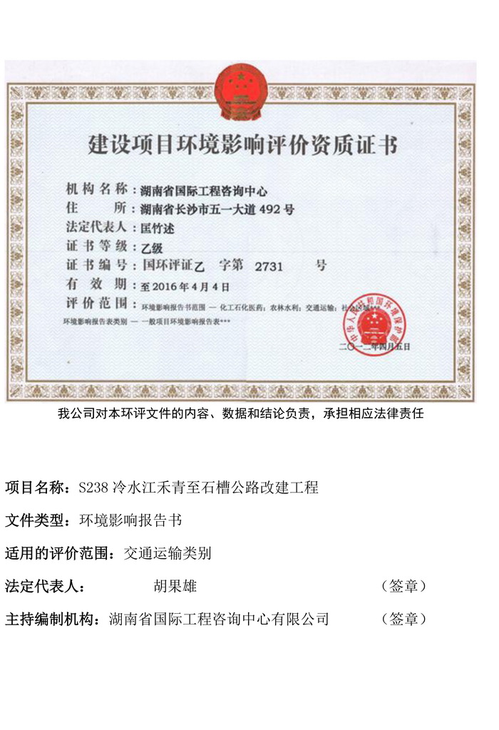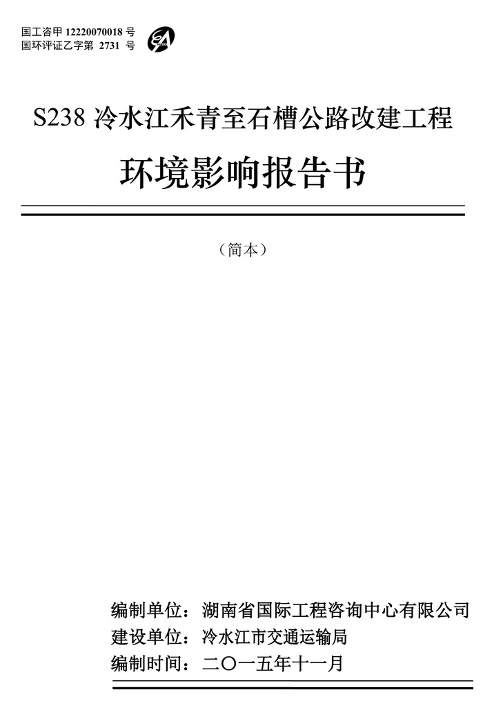 S238冷水江禾青至石槽公路改建工程環(huán)評(píng)公示(簡(jiǎn)本)