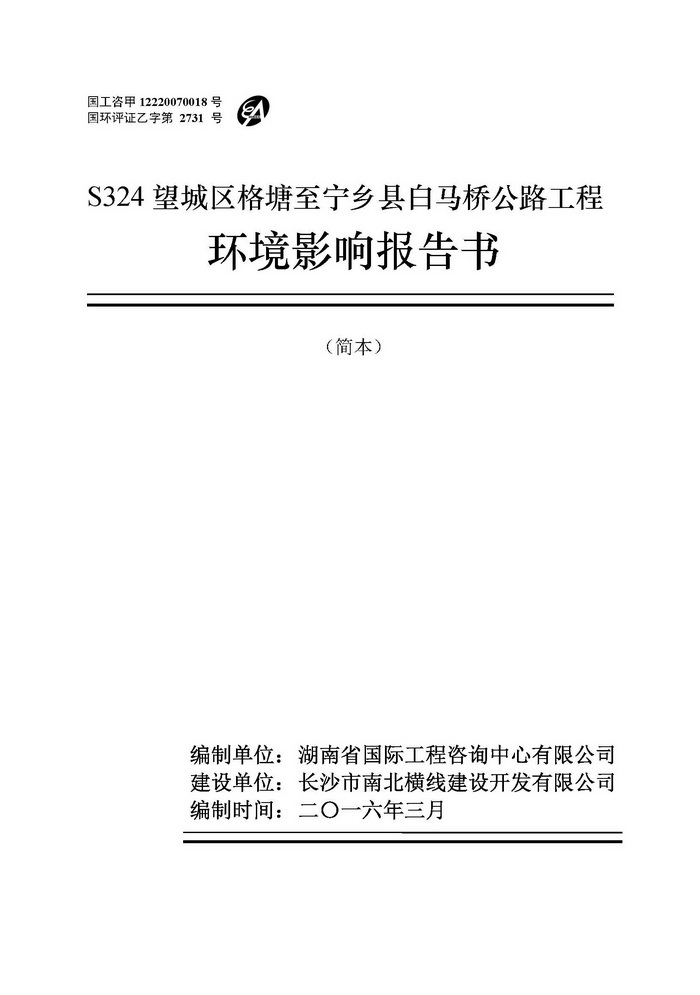 S324望城區(qū)格塘至寧鄉(xiāng)縣白馬橋公路工程環(huán)境影響報(bào)告書(簡(jiǎn)本))
