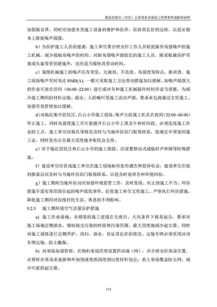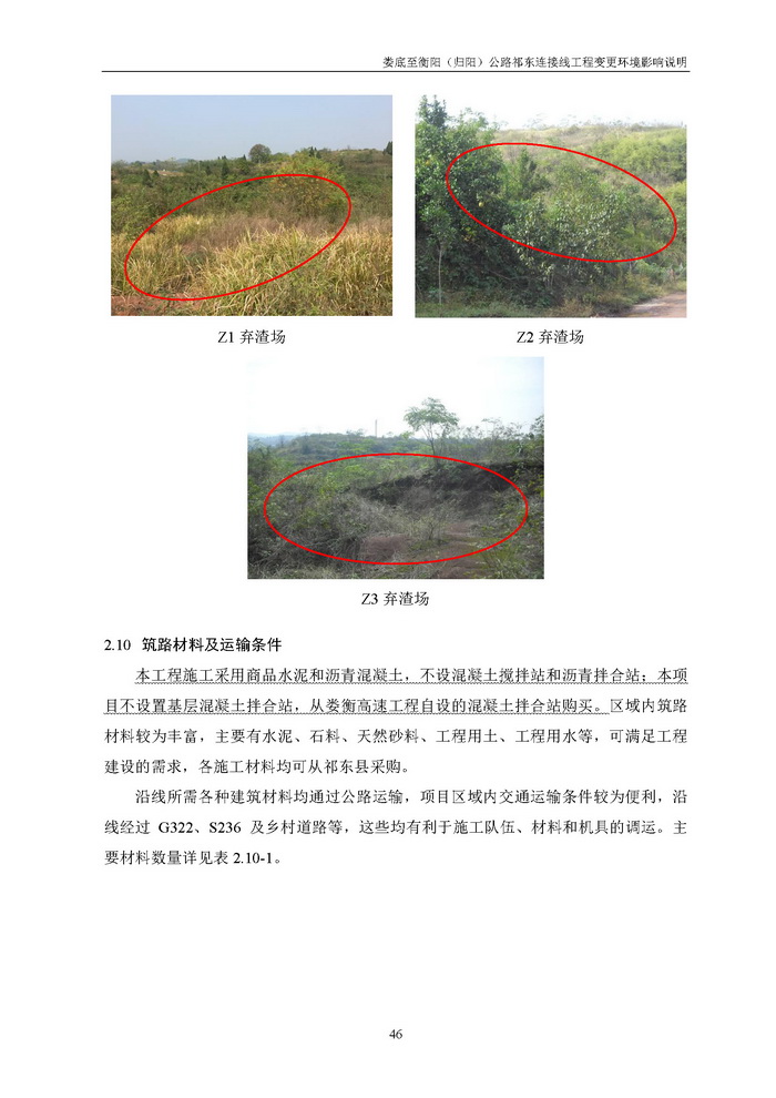 婁底至衡陽(歸陽)公路祁東連接線工程變更環(huán)境影響說明(報批)