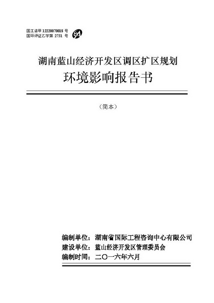 湖南藍(lán)山經(jīng)濟(jì)開(kāi)發(fā)區(qū)調(diào)區(qū)擴(kuò)區(qū)規(guī)劃環(huán)評(píng)簡(jiǎn)本公示