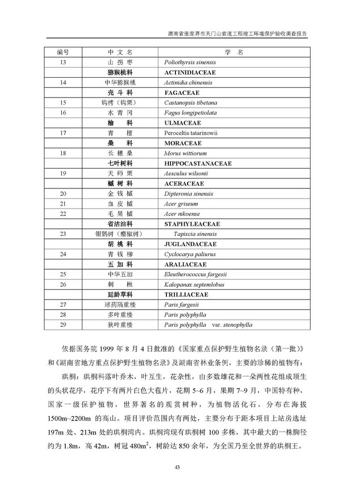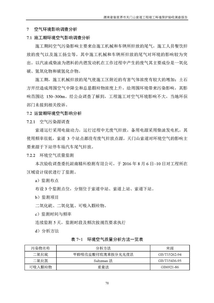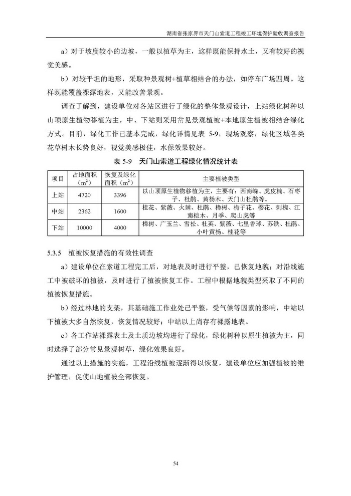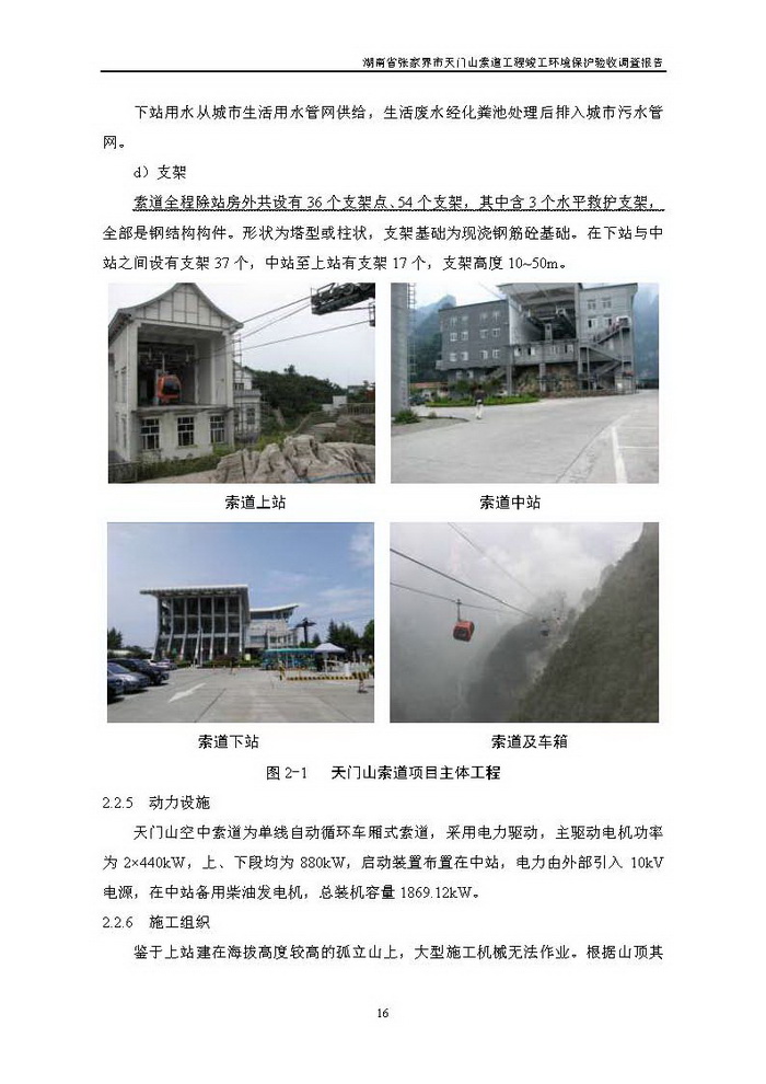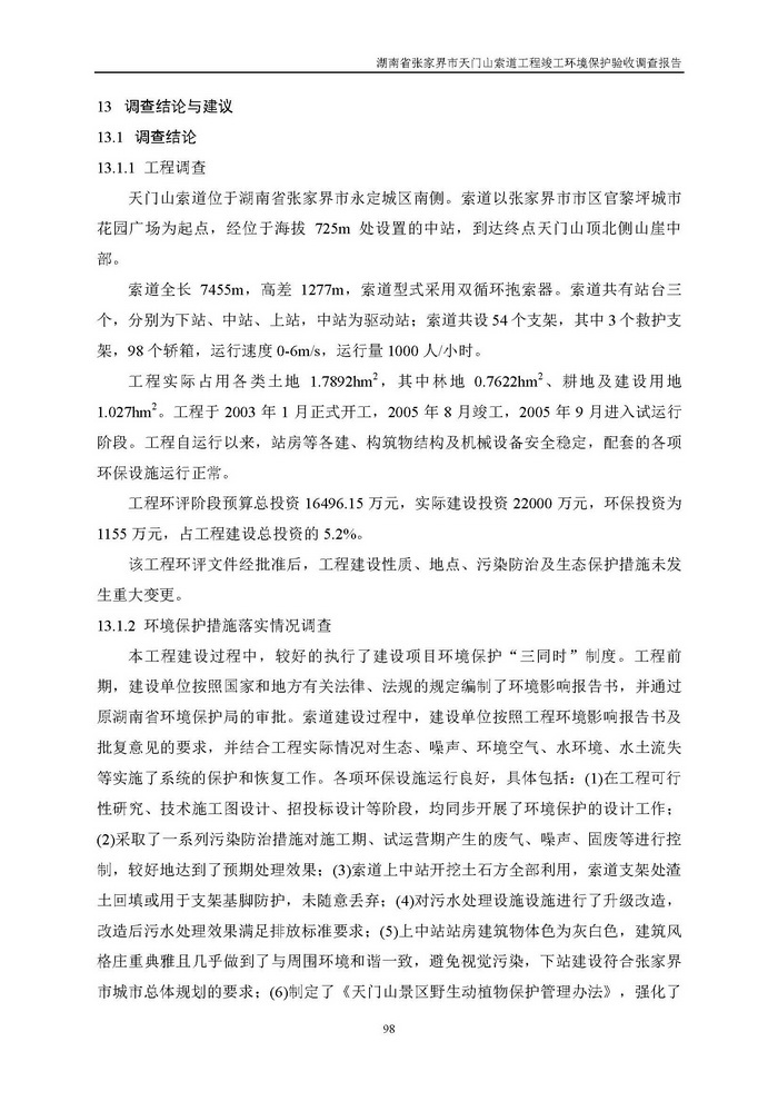 張家界天子山索道工程竣工環(huán)保驗收調(diào)查報告