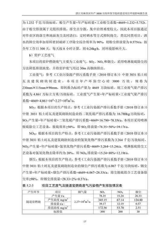 湛江市麻章區(qū)年產(chǎn)3000萬塊環(huán)保節(jié)能磚建設(shè)項目環(huán)境影響報告表公示