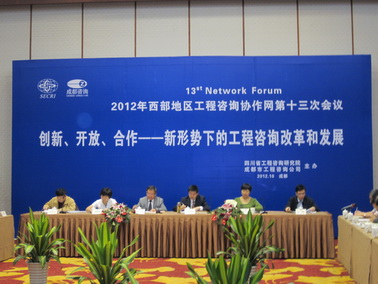 2012年10月10日,西部地區(qū)工程咨詢(xún)協(xié)作網(wǎng)第十三次會(huì)議在成都召開(kāi)。來(lái)自西部地區(qū)的13家成員單位,以及國(guó)家發(fā)改委國(guó)家投資項(xiàng)目評(píng)審中心、中國(guó)國(guó)際工程咨詢(xún)公司等23家綜合性工程咨詢(xún)單位的特邀代表參會(huì)。中心黨委委員、總工程師王沛皇參加了會(huì)議。