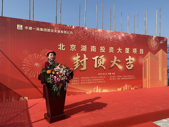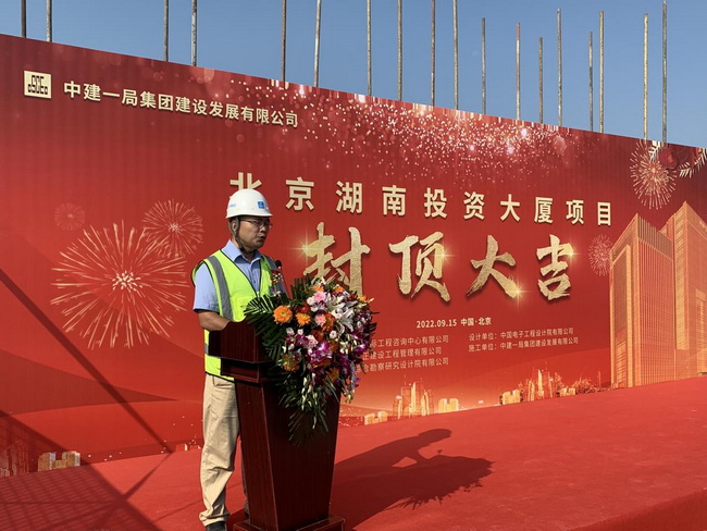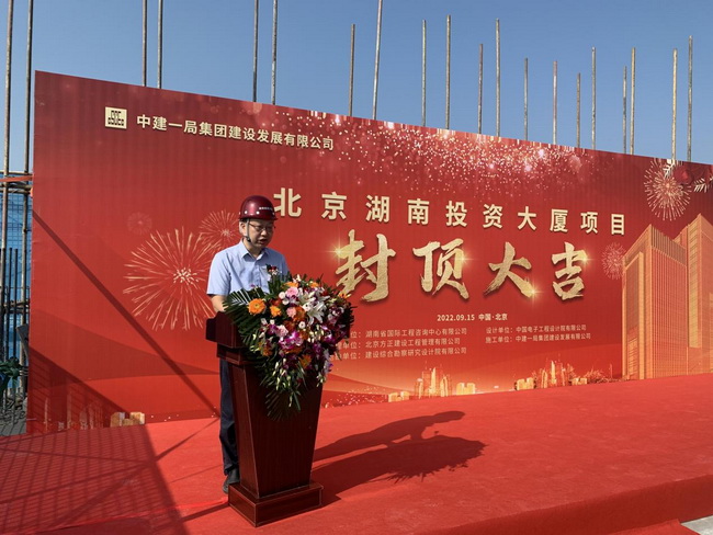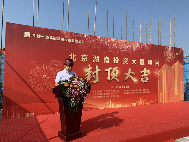 最后,湖南省政府駐北京辦事處黨組書記、主任魏旋君發(fā)表講話并宣布湖南投資大廈項目正式封頂。