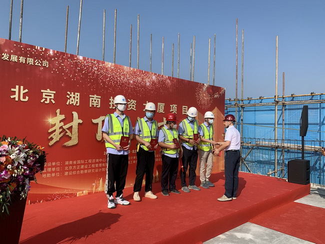 9月15日上午,(北京)湖南投資大廈項目封頂儀式在北京市豐臺區(qū)麗澤金融商務區(qū)隆重舉行。儀式由湖南省國際工程咨詢公司副總經理胡興國主持。